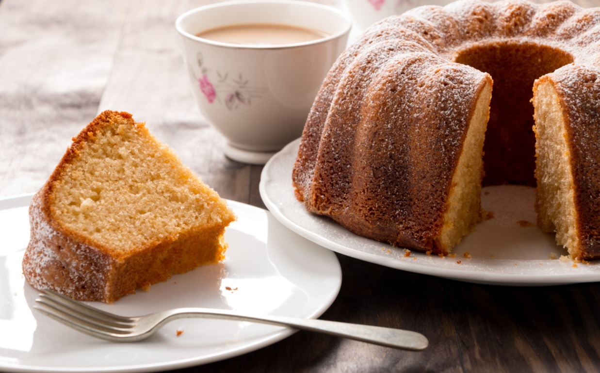 - Προσθέτετε το αλεύρι και ανακατεύετε μέχρι να αφομοιωθεί εντελώς. Αδειάζετε το μείγμα σε αντικολλητική φόρμα για κέικ που έχετε βουτυρώσει πριν και ψήνετε σε προθερμασμένο φούρνο 168ºC για 50' έως 1 ώρα. Αν θέλετε πριν το σερβίρισμα πασπαλίζετε με λίγη ζάχαρη άχνη.