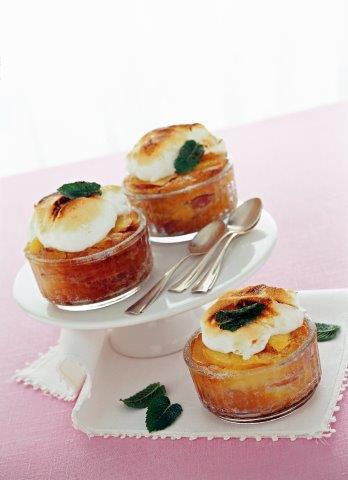 - Βουτυρώνετε τα φορμάκια και μοιράζετε σ΄αυτά τις φέτες ροδάκινων και από πάνω το μείγμα που ετοιμάσατε. Ψήνετε στο φούρνο στους 200ο C για 25-30'. Πασπαλίζετε με ζάχαρη άχνη και σερβίρετε.
