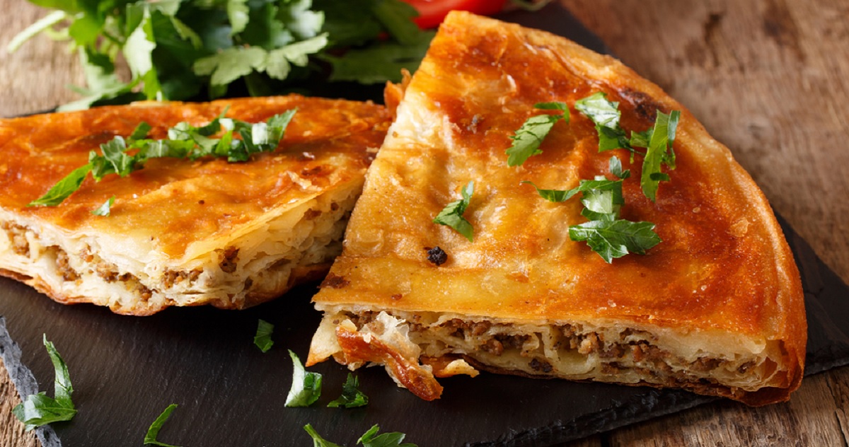 - Σε μια λαδωμένο ταψί τοποθετείτε το ένα φύλλο ζύμης ως βάση και απλώνετε τη γέμιση του κιμά. Καλύπτετε από πάνω με το δεύτερο φύλλο σφολιάτας και το κλείνετε, πιέζοντας με βρεγμένα δάκτυλα γύρω γύρω για να κολλήσουν τα 2 φύλλα μεταξύ τους. Ψήνετε την πίτα, αφού αλείψετε την επιφάνεια με λάδι, στους 200° C, 40’-45’ μέχρι να ροδίσει: