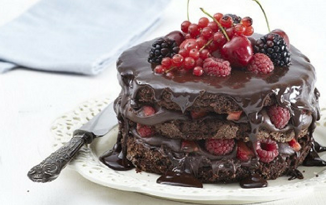 - Κόβουμε το κέικ, αφού κρυώσει, οριζόντια σε 2 μέρη ίδιου πάχους και απλώνουμε 200 γρ fudge στο ένα κομμάτι.