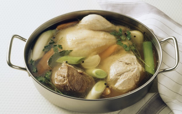 - Αφαιρείτε το λίπος που θα ανέβει στην επιφάνεια, το δοκιμάζετε αν χρειάζεται αλάτι-πιπέρι, και το σερβίρετε σε μικρά μπολ με 2-3 σταγόνες λεμόνι. Συνοδεύετε με τα κρέατα και τα λαχανικά που τα σερβίρετε χωριστά σε πιατέλα.