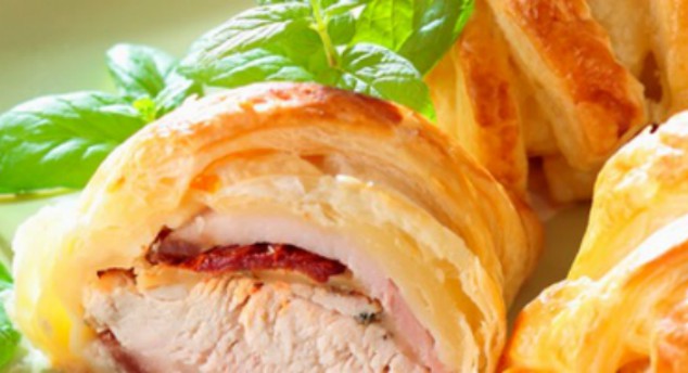 - Ανοίγετε τη ζύμη σε πολύ λεπτό φύλλο και κόβετε μικρά τριγωνάκια. Βάζετε στο κέντρο λίγη γέμιση και τυλίγετε κάθε τρίγωνο σε σχήμα κρουασάν. Αλείφετε με λίγο γάλα και ψήνετε σε μέτριο προθερμασμένο φούρνο για 10'-15'.
