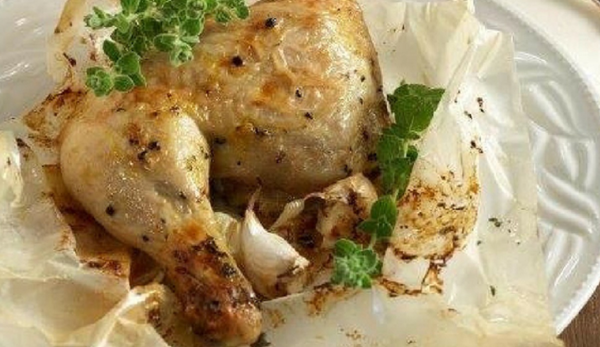 Συνταγή για κοτόπουλο στη λαδόκολλα με τυρί και πιπεριές
