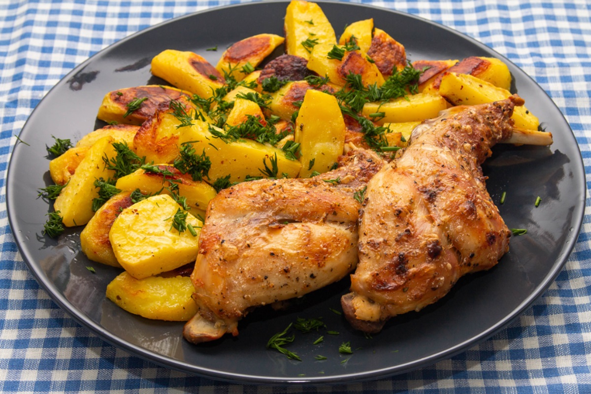 Συνταγή για κουνέλι με ροδοψημένες πατατούλες στη γάστρα. Μια πρόταση ταιριστή στο τραπέζι της Κυριακής από τον σεφ Κωνσταντίνο Κωβαίο.