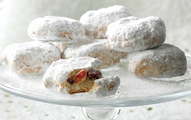 Τούτοι οι λίγο πειραγμένοι, βουτυράτοι όμως, κουραμπιέδες γεμίζουν με γιορτινή ζεστασιά το στόμα. Η απόλαυση επιτείνεται με ένα δυνατό, γλυκόξινο επιδόρπιο, κρασί ή λικέρ. Έχει ενδιαφέρον να δοκιμάσετε λικέρ κράνο ή -από κρασί- ένα Σαντορινιό Vinsanto.