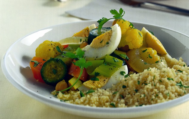 - Ετοιμάζετε το κους κους σύμφωνα με τις οδηγίες της συσκευασίας του και το σερβίρετε μαζί με το μείγμα των λαχανικών. Γαρνίρετε με δυόσμο ή μαϊντανό και τα βραστά αυγά και σερβίρετε.