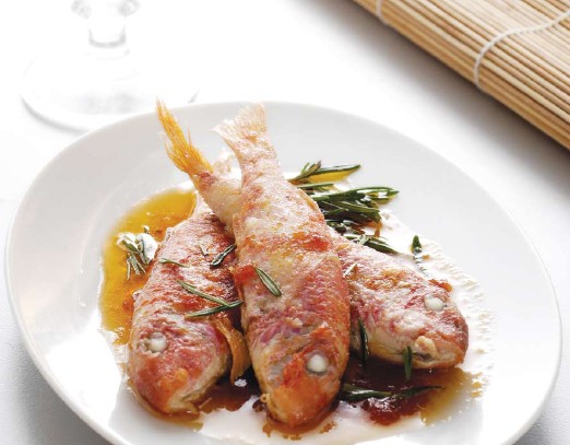 Ένα ροζ κρασάκι για ένα φαγάκι στην ίδια απόχρωση. Τόσο τα μπαρμπούνια όσο και τα ξαδέρφια τους οι κουτσομούρες λατρεύουν τους ροζέ συνδυασμούς. Ειδικά στη συνταγή αυτή, που σημαντικό ρόλο παίζουν οι ντοματούλες και το μυρωδάτο δεντρολίβανο, καλό είναι να επιλέξουμε ένα καραμελένιο, αρωματικό ροζέ από Grenache και Syrah.