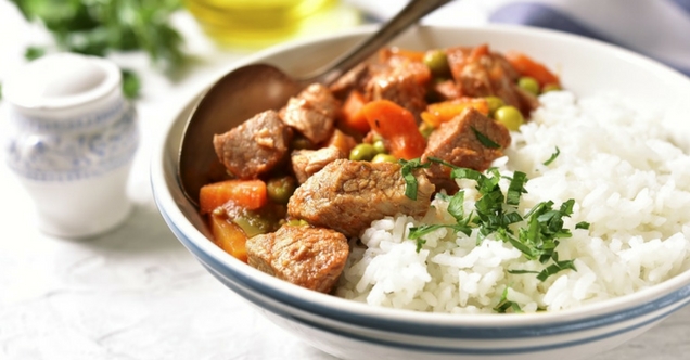 - Ετοιμάζετε το ρύζι σύμφωνα με τις οδηγίες της συσκευασίας του. Σερβίρετε το κρέας με τα καρότα και τον αρακά μαζί με το ρύζι.