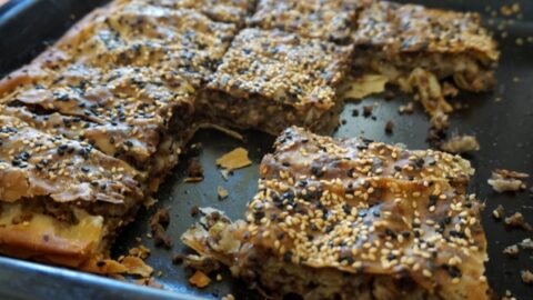 Οι βορειοελλαδίτικες πρωτοχρονιάτικες πίτες δεν ήταν πάντοτε γλυκές. Έφτιαχναν και αλμυρές βασιλόπιτες είτε με τυρί είτε με κρέας. Μια φανταστική συνταγή κρεατόπιτας, που στην Ανατολική Θράκη συνηθιζόταν ως πρωτοχρονιάτικη πίτα έδωσε στο ICookGreek η φίλη μας, Μαριάννα Μ. Την είχε πάρει από μια κυρία που έμενε σε χωριό κοντά στα ελληνοτουρκικά σύνορα. Την έφτιαχναν την … Συνεχίστε να διαβάζετε το Κρεατόπιτα Θράκης με πράσα και μπαχαρικά (αλμυρή βασιλόπιτα).