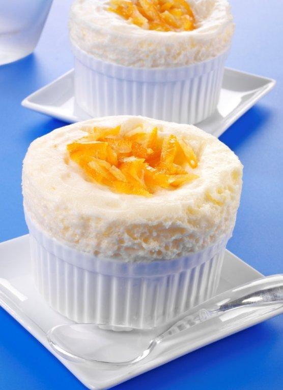 - Κατόπιν ρίχνετε σ’ ένα μπολ το γιαούρτι και προσθέτετε σιγά σιγά το ζελέ χτυπώντας με το μίξερ σε χαμηλή ταχύτητα. Κατόπιν ενσωματώνετε στο προηγούμενο μείγμα τη μαρέγκα, το ξύσμα πορτοκαλιού και την κρέμα γάλακτος και ανακατεύετε απαλά.