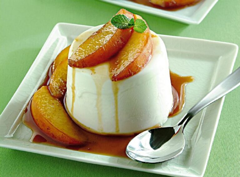 ΓΛΥΚΙΣΜΑΤΑ | Συνταγή για δροσερή κρέμα με πλούσια γεύση και καραμελωμένα ροδάκινα