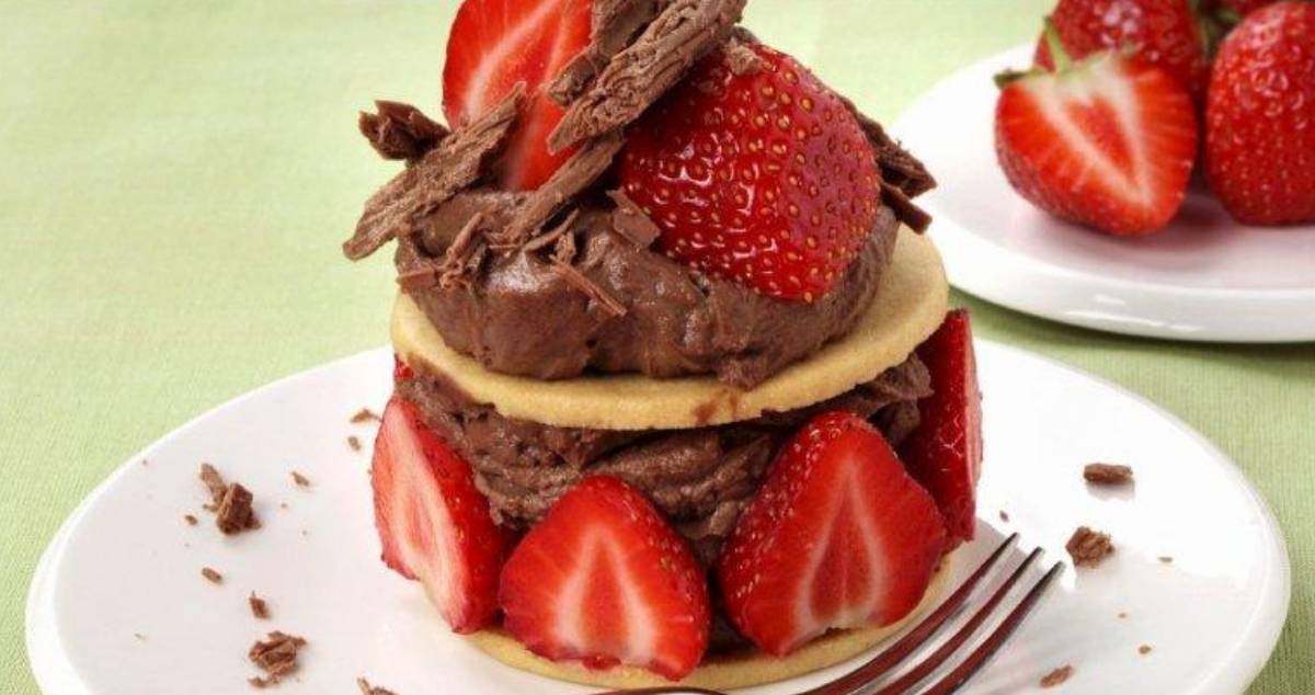 Συνταγή για φανταστικό γλυκό με σοκολάτα, φράουλες και μπισκότα.
