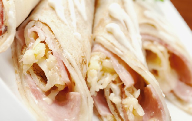 - Στη συνέχεια αφού έχουν ετοιμαστεί οι κρέπες, τις γεμίζετε με το τυρί,τα αλλαντικά και τα μανιτάρια και τις τυλίγετε σε ρολό.