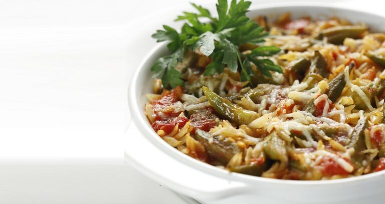 - Βράζετε χωριστά το κριθαράκι σε αλατισμένο νερό σύμφωνα με τις οδηγίες τις συσκευασίας του αλλά για 4' λιγότερο και το στραγγίζετε. Το αδειάζετε σε πυρίμαχο σκεύος και προσθέτετε το μείγμα με τις μπάμιες. Ανακατεύετε προσεκτικά και και ψήνετε σε προθερμασμένο φούρνο στους 200°C για 10’ ακόμη.