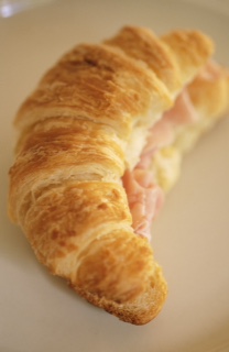 - Κόβετε τα κρουασάν στη μέση. Τα αλείφετε με λίγη μουστάρδα. Ζεματάτε τα κρεμμυδάκια 2΄ σε αλατισμένο νερό που κοχλάζει και τα στραγγίζετε καλά. Ζεσταίνετε το βούτυρο και σοτάρετε τα φρέσκα κρεμμυδάκια.