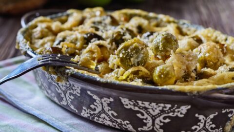 Λαχανάκια Βρυξελλών με παρμεζάνα και αμύγδαλα ή κουκουνάρι