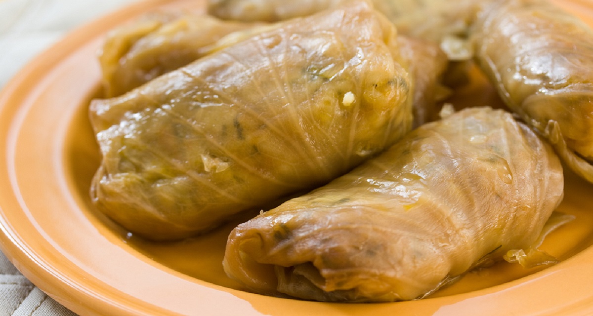 - Ζεματίζετε σε καυτό νερό το λάχανο, βάζετε σε κάθε φύλλο λίγη γέμιση και αρχίζετε το τύλιγμα όπως στους κοινούς λαχανοντολμάδες.