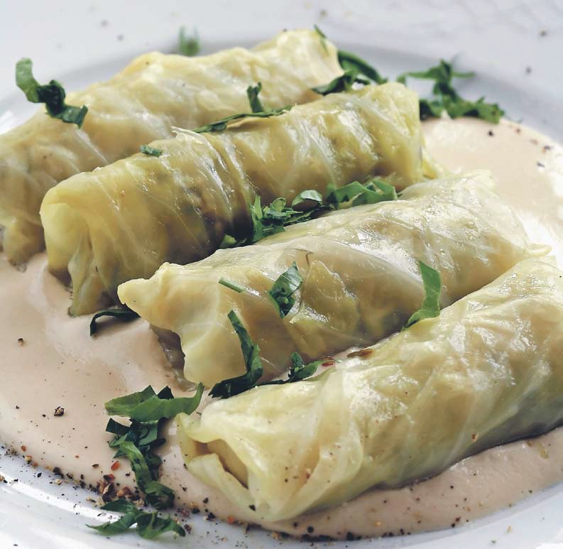 - Στη συνέχεια χτυπάτε στο μπλέντερ το ταχίνι, προσθέτοντας σιγά – σιγά τον χλιαρό λεμονάτο ζωμό του φαγητού και με τη σάλτσα ταχινιού, αντί για αυγολέμονο, σερβίρετε τους λαχανοντολμάδες.