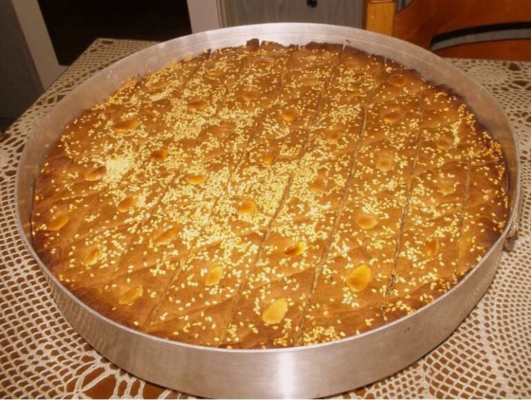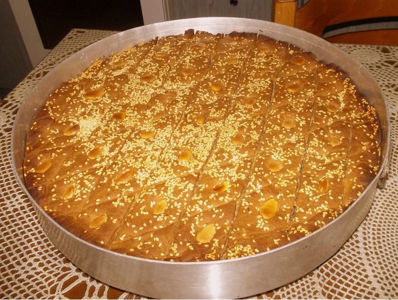 - Βράζουμε για περίπου 7 λεπτά το νερό με τη ζάχαρη μέχρι να γίνουν σιρόπι. Σε κατσαρόλα ζεσταίνουμε το λάδι και ρίχνουμε σιγά σιγά το αλεύρι και το σιμιγδάλι. Ανακατεύουμε σταθερά για να γίνει το μείγμα ομοιογενές χρώματος καφέ. Μόλις έχει πήξει προσθέτουμε σιγά σιγά το σιρόπι μέχρι να απορροφηθεί. Βάζουμε το μείγμα σε ταψί, πασπαλίζουμε με σουσάμι και ψήνουμε στους 177 βαθμούς για 60 λεπτά. Μόλις το βγάλουμε από το φούρνο αφήνουμε να κρυώσει και πασπαλίζουμε με κανέλα. ΠΗΓΗ: www.lesvoskitchen.gr Επισκεφτείτε το για περισσότερες παραδοαιακές συνταγές απ' την κουζίνα της Λέσβου.