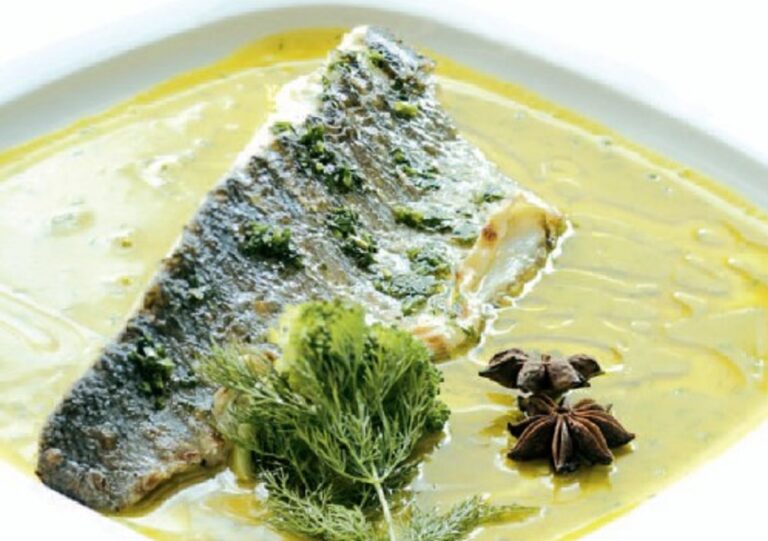- Σε μια κατσαρόλα ρίχνετε το ελαιόλαδο και σοτάρετε το κρεμμύδι με το σκόρδο μέχρι να μαραθούν. Προσθέτετε το ζωμό ψαριού, το μάραθο, τον κουρκουμά και το χυμό λεμονιού και βράζετε τη σάλτσα για 25΄. Την πολτοποιείτε πρώτα στο μπλέντερ, την φιλτράρετε μέσα από ψιλή σήτα και προσθέτετε αλάτι, πιπέρι και το ούζο.