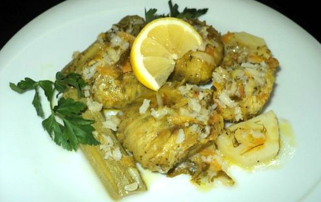 - Στη συνέχεια, αφού έχουμε φτιάξει τη γέμιση, ή αλλιώς στην τοπική διάλεκτο το «γόμο», ξεκινάμε να γεμίζουμε τα λουλούδια μας. Όταν η γέμιση φτάνει έως επάνω, κλείνουμε το γεμιστό μας κολοκυθολούλουδο στρίβοντας λίγο την περισσευούμενη κορφή του.