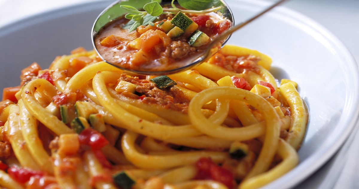- Πολτοποιείτε τις ντομάτες ή τα ντοματάκια στο μπλέντερ. Σε μια κατσαρόλα ρίχνετε το μισό βούτυρο και όλο το λάδι και σοτάρετε το κρεμμύδι για λίγα λεπτά. Προσθέτετε τον κιμά και τον ανακατεύετε μέχρι να αλλάξει χρώμα. Ρίχνετε κατόπιν όλα τα υπόλοιπα λαχανικά (κολοκυθάκια, καρότο, σέλινο) και συνεχίζετε το σοτάρισμα για 5’-6’.