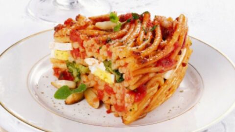 Συνταγή σπαγγέτι στο φούρνο που εμπνέεται από τα γαλλικά timbale.