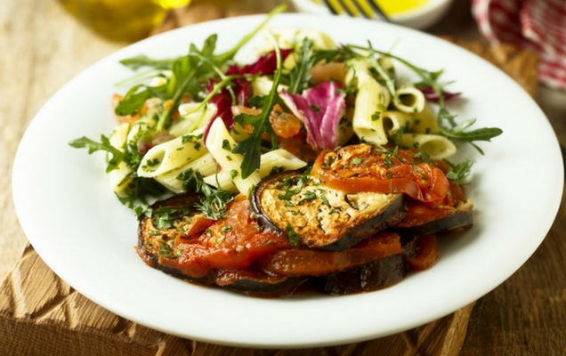 Συνταγή για ζυμαρικά με ψητά λαχανικά ανάμεικτα. Νόστιμο και υγιεινό πιάτο χωρίς ζωικά υλικά κατάλληλο και για vegan διατροφή ή νηστεία.