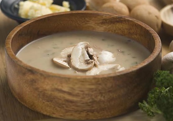 - Καθαρίζετε τα μανιτάρια, ψιλοκόβετε τα κρεμμύδια και το σκόρδο και λιώνετε το βούτυρο σε μία μεγάλη κατσαρόλα. Μαραίνετε τα κρεμμύδια και το σκόρδο στο βούτυρο και πολτοποιείτε τα μανιτάρια, αφού κρατήσετε λίγα για το γαρνίρισμα.