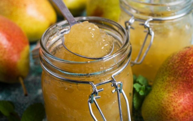 - Βάζετε πάλι το μείγμα αχλαδιών-ζάχαρης στην κατσαρόλα και το αφήνετε να σιγοβράσει σε χαμηλή θερμοκρασία, χωρίς να σταματήσετε να ανακατεύετε. Όταν η μαρμελάδα αποκτήσει την πυκνότητα που σας ικανοποιεί, την αδειάζετε καυτή στα βάζα, που θα έχετε αποστειρώσει προηγουμένως. Τα κλείνετε ερμητικά και τα διατηρείτε σε ξηρό και δροσερό μέρος.