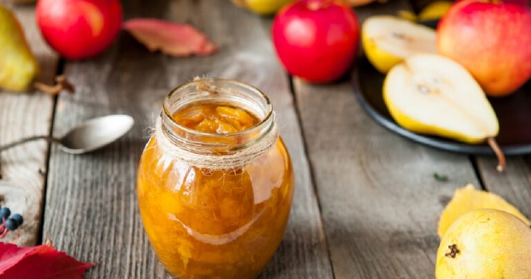- Βάζετε πάλι το μείγμα αχλαδιών-μήλων στην κατσαρόλα και το αφήνετε να σιγοβράσει σε χαμηλή θερμοκρασία, χωρίς να σταματήσετε να ανακατεύετε. Όταν η μαρμελάδα αποκτήσει την κανονική πυκνότητα, την αδειάζετε καυτή στα βάζα, που θα έχετε αποστειρώσει προηγουμένως. Τα κλείνετε ερμητικά και τα διατηρείτε σε ξηρό και δροσερό μέρος.