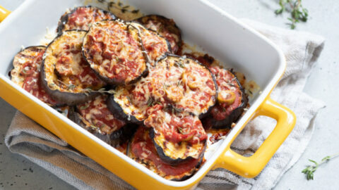 Μελιτζάνες με σάλτσα ντομάτας και τυριά στο φούρνο