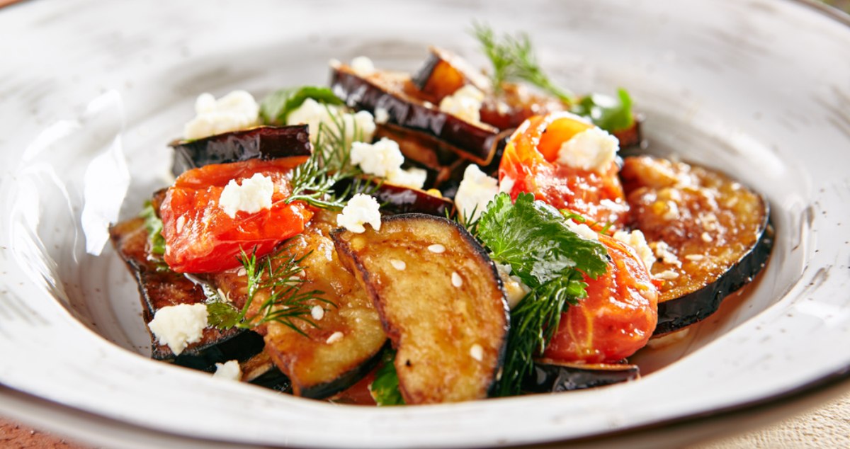 Συνταγή για μελιτζάνες με σκορδάτα ντοματίνια και φέτα. Λαχταριστό συνοδευτικό αλλά και vegetarian κυρίως πιάτο.