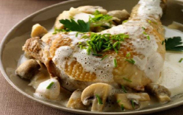 Συνταγή για κοτόπουλο μαγειρεμένο στην μπίρα με μανιτάρια και κρέμα