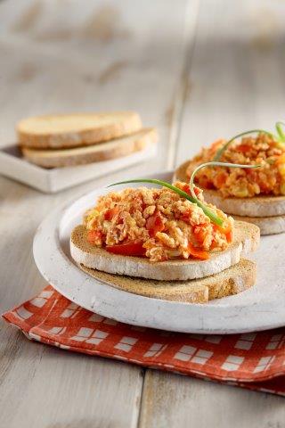 - Ανακατεύετε και ψήνετε 4’-5’ μεχρι να σφίξουν τα αυγά. Αν θέλετε προσθέτετε στον καγιανά και λίγη φέτα τριμμένη και πιπεριά ψιλοκομμένη. Σερβίρετε τον καγιανά πάνω στις φρυγανιές.