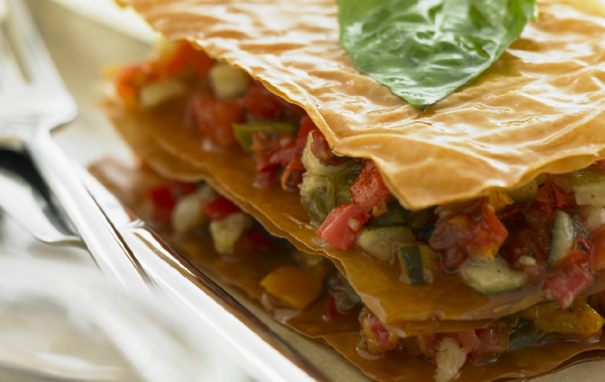 Συνταγή για αλμυρό μιλφέιγ με ψητά λαχανικά και χαλούμι