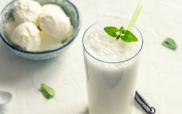 - Ανακατεύετε όλα τα υλικά μαζί στο μπλέντερ για 2'-3' μέχρι το μείγμα σας να αποκτήσει μια κρεμώδη υφή. Αδειάζετε σε ποτήρια. Γαρνίρετε με φρέσκα φυλλαράκια δυόσμου ή ξύσμα λάιμ και σερβίρετε.