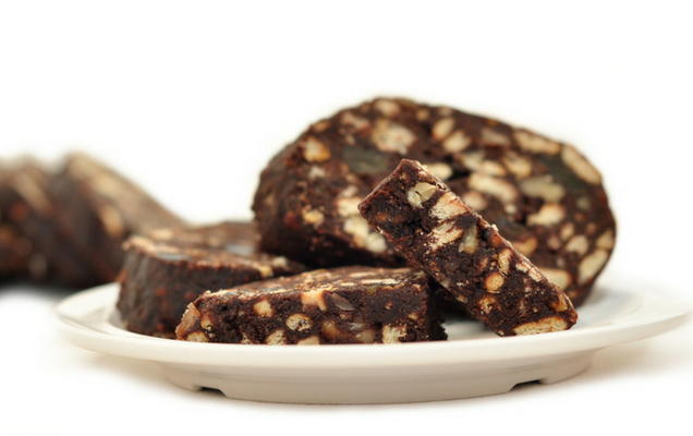 - Μόλις κρυώσει κάπως το μείγμα της κουβερτούρας, ρίχνετε τα μπισκότα και τα καρύδια και ανακατεύετε. Στρώνετε σε μία μακρόστενη φόρμα του κέικ αντικολλητικό χαρτί ή λαδόκολλα και αδειάζετε το μείγμα μέσα. Το σκεπάζετε με το υπόλοιπο χαρτί και το βάζετε στην κατάψυξη μέχρι να σφίξει. Όταν πρόκειται να σερβίρετε, μπορείτε να βγάζετε το μωσαϊκό λίγο νωρίτερα από το ψυγείο για να μαλακώνει και να κόβεται ευκολότερα σε φέτες.