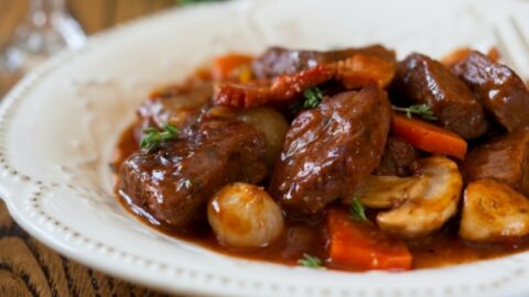 Μοσχαράκι κοκκινιστό με μανιτάρια και καρότα