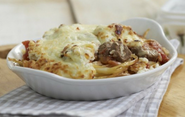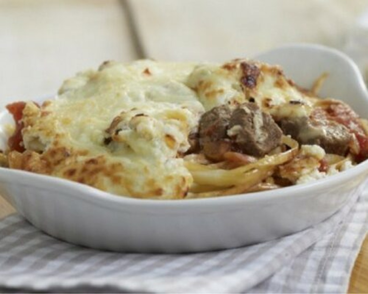 Λαχταριστή συνταγή για μοσχαράκι με ζυμαρικά, τυριά και γιαούρτι στο πήλινο