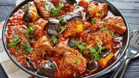 Μοσχάρι κοκκινιστό με μελιτζάνες