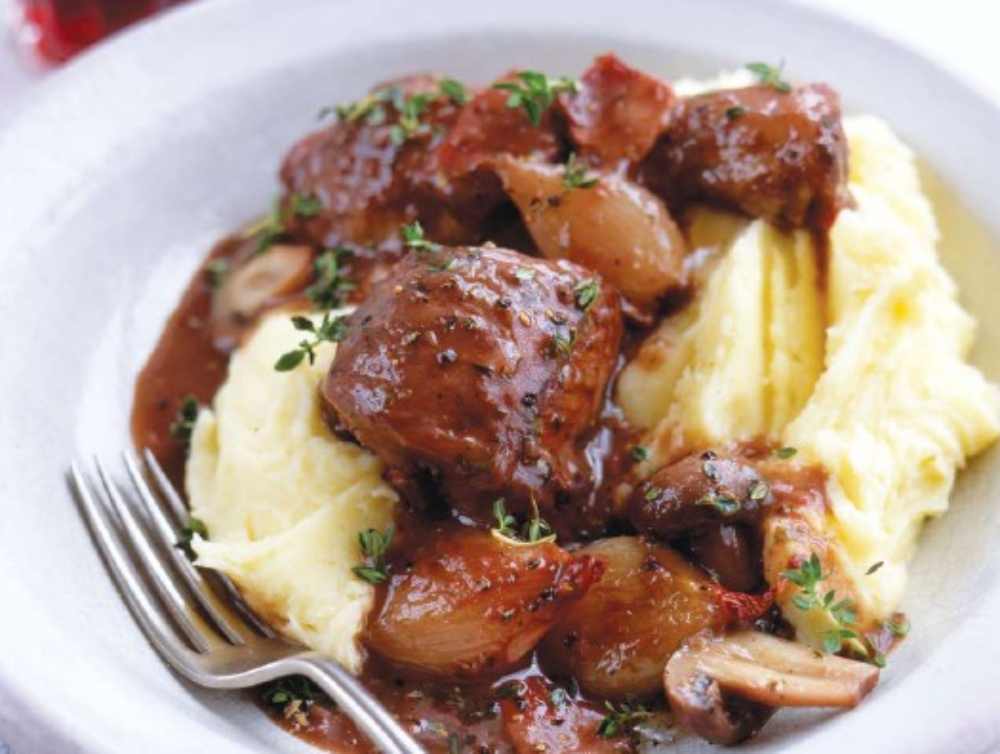 Μοσχαράκι με πλούσια σάλτσα που ζητάει ένα σφιχτό πουρέ για να ολοκληρωθεί η απόλαυση. Αν φτιάξετε σπιτικό, που σας το προτείνουμε με θέρμη, θα βρείτε το λινκ της συνταγής στο τέλος.