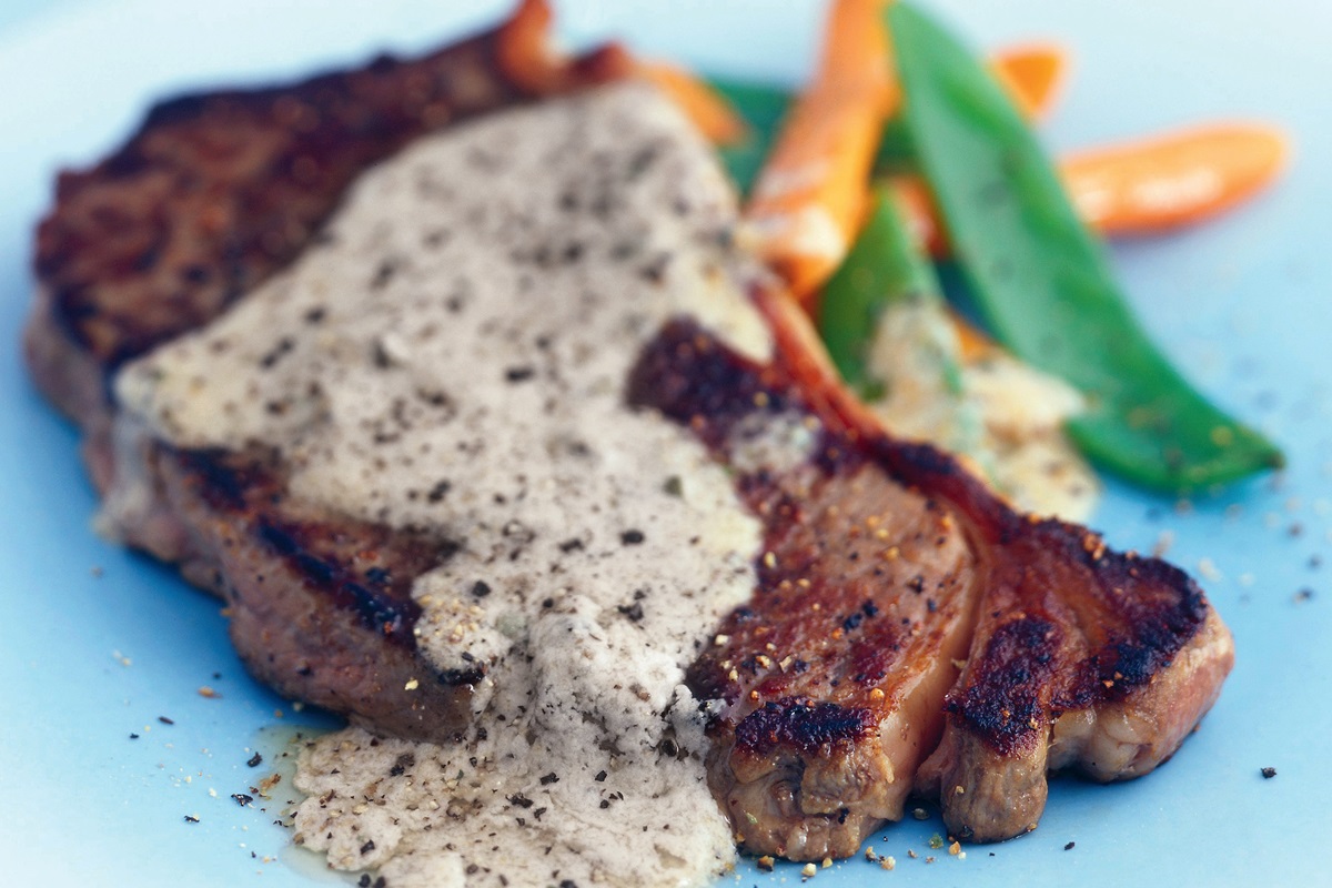 Συνταγή για μοσχαρίσιες μπριζόλες ή στέικ με πιπεράτη κρέμα.
