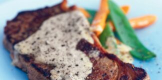 Συνταγή για μοσχαρίσιες μπριζόλες ή στέικ με πιπεράτη κρέμα.