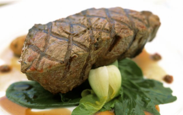Συνταγή για μοσχαρίσιο φιλέτο με πιπεράτη σάλτσα κρασιού και σπανάκι σοτέ.