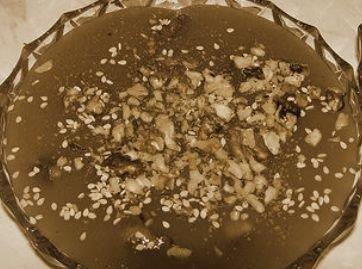 - Κατεβάζετε τη μουσταλευριά από τη φωτιά και την αδειάζετε σε πιατέλες ή σε μπολάκια. Πασπαλίζετε με καρύδια, κανέλα και σουσάμι.