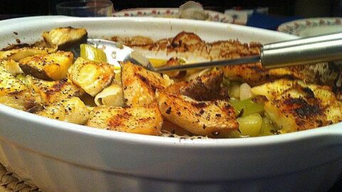 Μπακαλιάρος με πράσα στο φούρνο