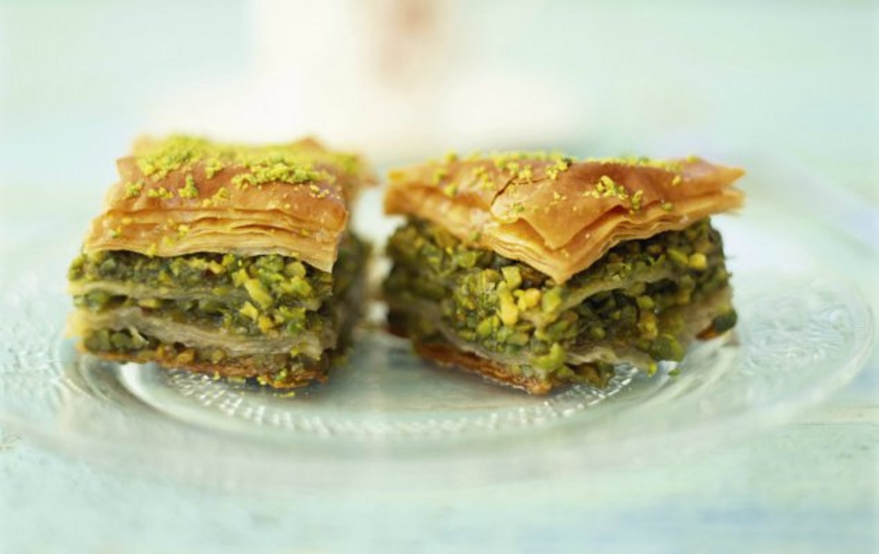 Δεδομένου πως όλη η συνομοταξία των ξηροκαρπάτων γλυκών τρέφει ισχυρά συναισθήματα προς τους επιδόρπιους, λιαστούς οίνους, θα σταθούμε στην επιμέρους γλυκύτητα κι απαλά τρυφερή, πράσινη γεύση του φιστικιού, για να επιλέξουμε από την γκάμα των επιδόρπιων οίνων, ένα γλυκό Μοσχάτο Ρίου ή ένα Vinsanto της Σαντορίνης.
