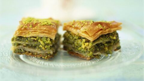 Δεδομένου πως όλη η συνομοταξία των ξηροκαρπάτων γλυκών τρέφει ισχυρά συναισθήματα προς τους επιδόρπιους, λιαστούς οίνους, θα σταθούμε στην επιμέρους γλυκύτητα κι απαλά τρυφερή, πράσινη γεύση του φιστικιού, για να επιλέξουμε από την γκάμα των επιδόρπιων οίνων, ένα γλυκό Μοσχάτο Ρίου ή ένα Vinsanto της Σαντορίνης.