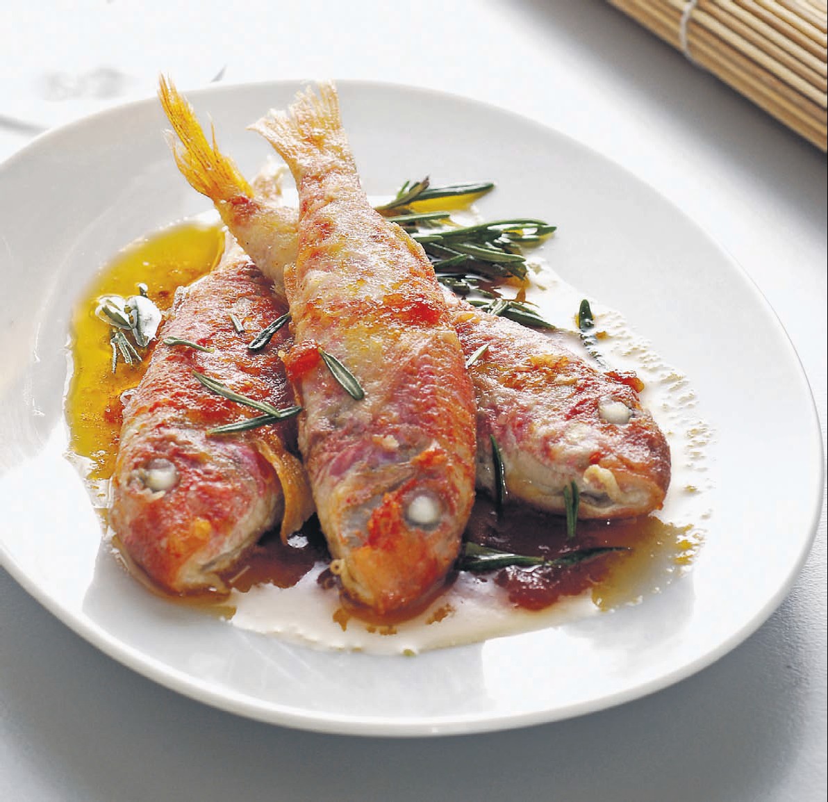 Βυθισμένα στη σαλτσούλα τους, που τα ντύνει με έξτρα νοστιμιά και με πικάντικη γεύση, αυτά τα μπαρμπούνια μπορούμε να τα απολαύσουμε είτε με κάποιο ροζέ, στιβαρό κρασί από Ξινόμαυρο, Syrah ή Grenache, είτε με κάποιο ερυθρό, όχι όμως υπερβολικά τανικό και στυφό. Προτιμάμε ένα Κοτσιφάλι, ένα Μοσχάτο Αμβούργου ή ιδανικά, μια Γουμένισσα.